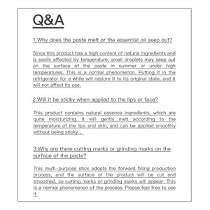 2. Natural plant wax is used in place of paraffin-based hardeners, resulting in a softer texture. Do not twist out too much product at once to prevent breakage. Store in a cool, shaded place. Avoid direct sunlight and high temperatures.