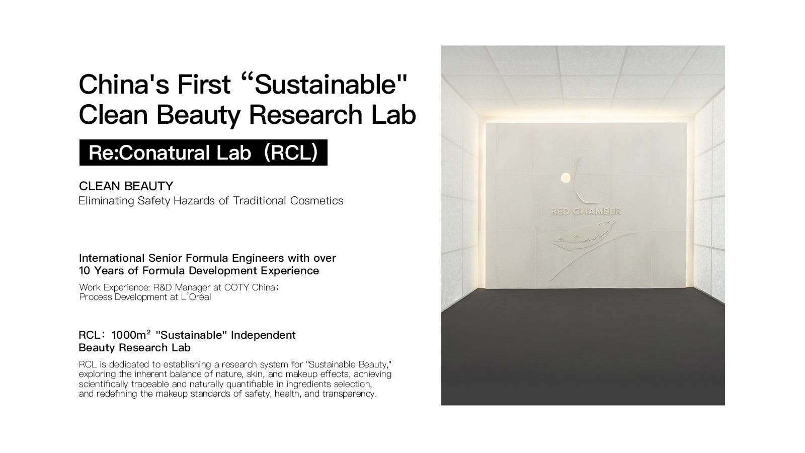 Established in 2020, RED CHAMBER was inspired to bring Clean Beauty to the cosmetic industry in China. After years of deep cultivation in the market, our product collections are made to satisfy consumers' dual needs of clean formulation and excellent performance. We are obsessed with the profound meaning of beauty, not only a brief beauty in appearance but also a means of calling to inner beauty, and all things beautiful inherently are clean. We believe that the essence of life is pure and clean, and beauty is the infinite return to this essence.
